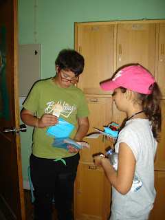 O Rafael e o Rui foram hoje os contadores de histórias na BE: durante o intervalo da tarde surpreenderam colegas e professores com: "Chibos Sabichões" e "O Patinho Feio"; para isso utilizaram uns livros muito especiais, transcritos em SPC.