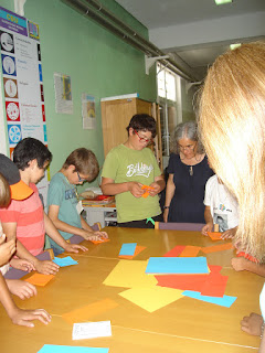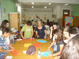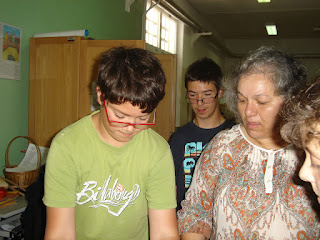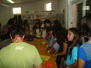 Receita de gomas caseiras - numa das atividades das Semana da Leitura do Agrupamento, alguns alunos nas atividades de Vida Diária fizeram uma receita de gomas caseiras. Depois de pesquisarem a receita reescreveram-na com símbolos. Leram-na aos colegas da escola e ofereceram a cada um a receita em spc. As gomas foram oferecidas aos colegas dentro de cestas realizadas em origami, pelos alunos que visitaram a BE orientados pelo João Marcelo.
